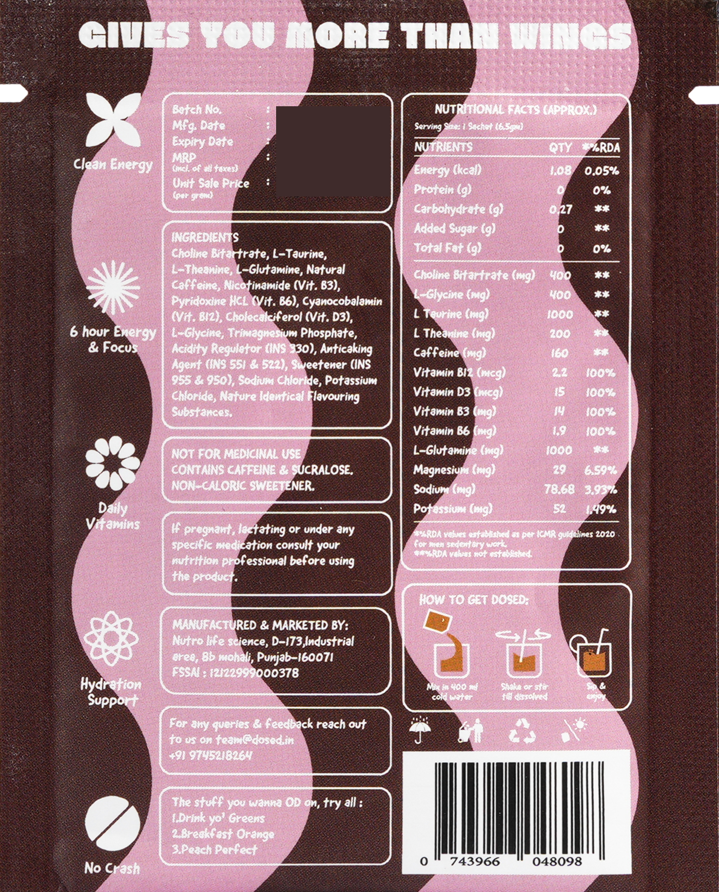 DOSED isn’t just about clean, everyday energy — it’s about enjoying it too. Every sachet mixes into a refreshing, juice-like drink that feels more like a treat than a supplement. Smooth, sugar-free, and crafted for India’s humid weather, it fuels your focus, hydration, and stamina through work, workouts, and long days — all while tasting irresistibly good.